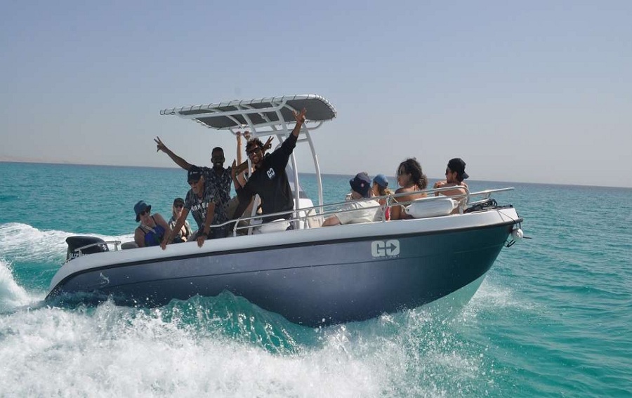 Nous vous mettons ensuite sur le hors-bord et partons rapidement pour The Dolphin House au milieu de la mer afin que vous puissiez ressentir le flux d’air et l’impact de l’eau, en dégustant les boissons non alcoolisées et les rafraîchissements proposés à bord de Bateau rapide privé .