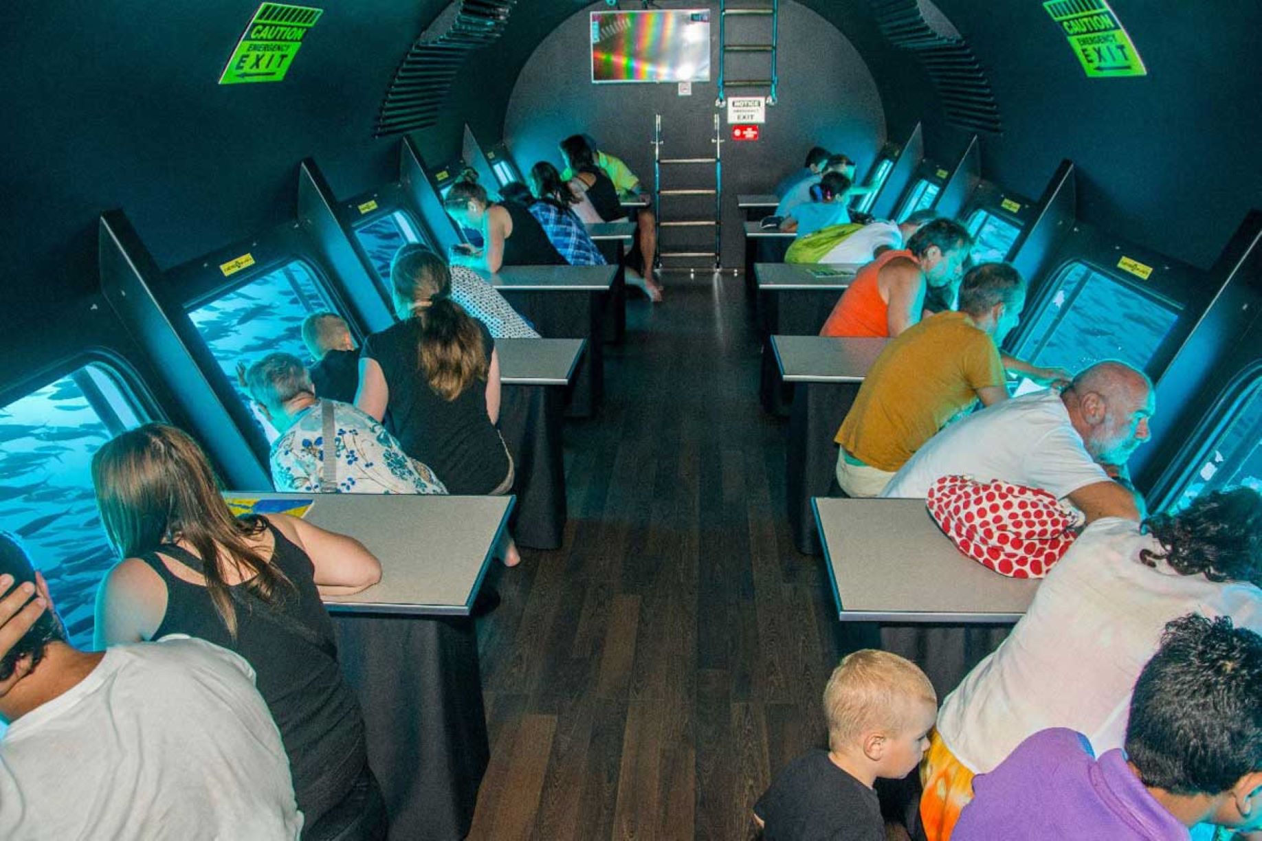 Ensuite, vous descendez au premier étage du semi-sous-marin pour observer les poissons et les coraux pendant environ 45 minutes.