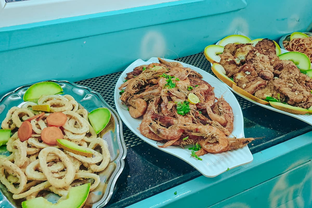 • ужин с морепродуктами и безалкогольные напитки.